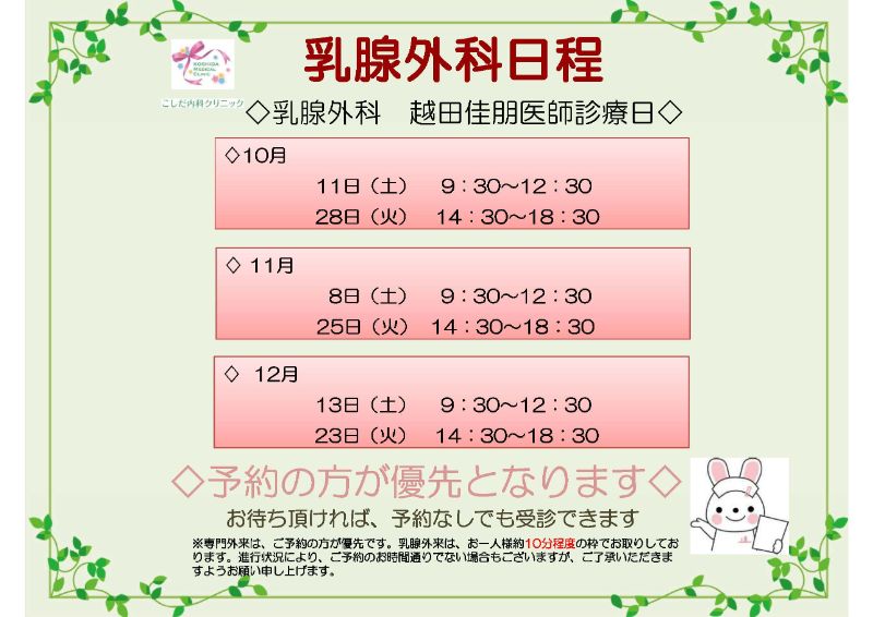 2015年1月に開業してからおかげ様で10年が経ち、今年2025年は11年目に入っています。開業当初からのホームページも、時間の経過とともにお知らせしたいことも増え、いろいろと見直す部分もあり、この度リニューアルすることとなりました。 只今作業の真っ最中で、先日は新しいホームページのための撮影も行いました。 コロナ以降医療現場がますます複雑になり、予約手続きや発熱外来のご利用など、受...