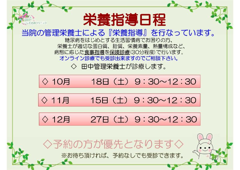 世田谷区では、40歳以上74歳以下の世田谷区国民健康保険に加入されている方を対象に特定健診・特定保健指導を実施しており、当院でもお受けいただけます。ご自身の生活習慣病の発症リスクや、総合的な健康状態を知るチャンスです。秋以降は混んでくるので、今の時期がおすすめです!ぜひご利用いただき、健康管理にお役立てください。 ...